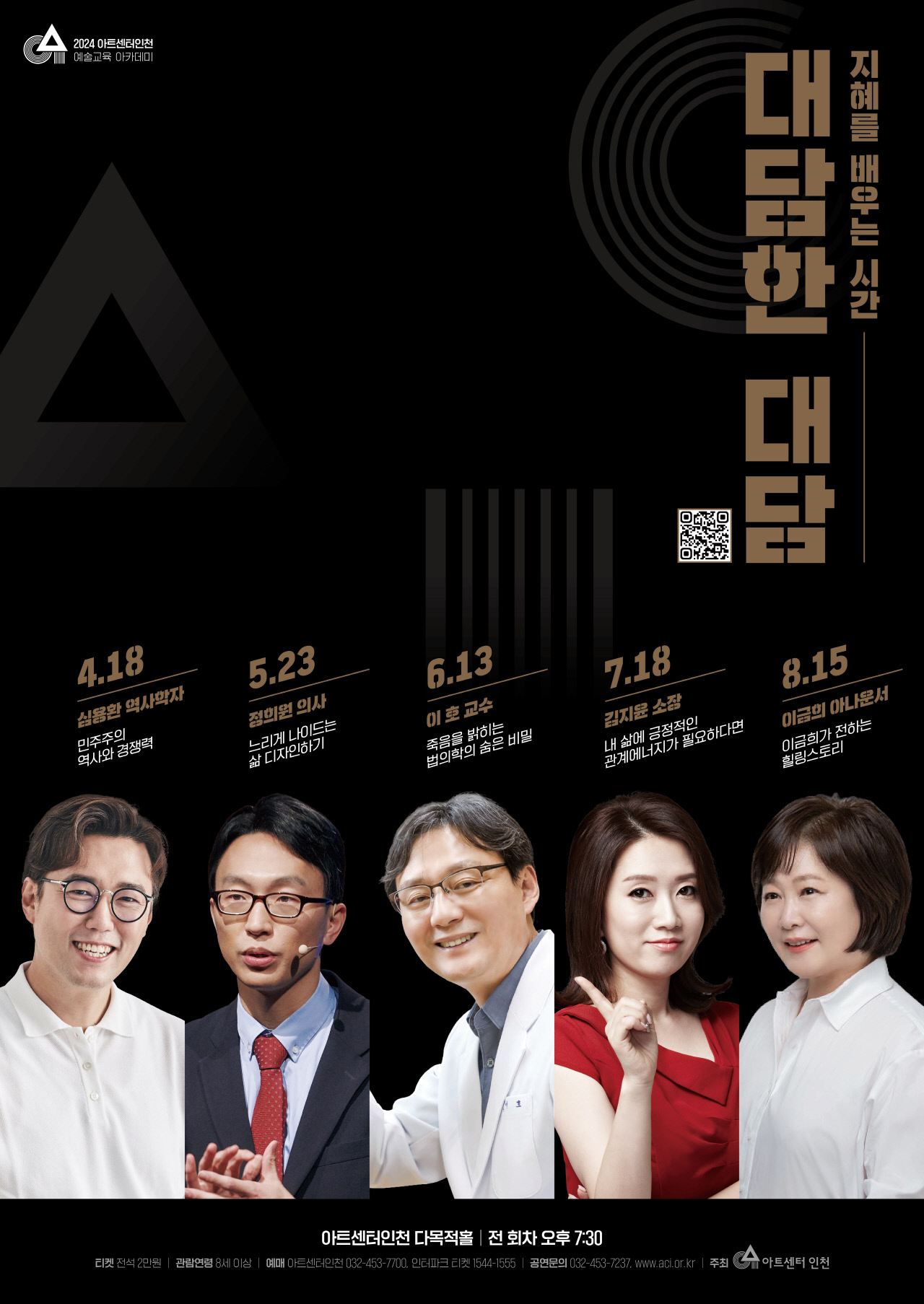 명사특강 '대담한 대담'은 총 5회의 강연으로 아트센터인천 7층 다목적 홀에서 관객들과 만날 예정이다.